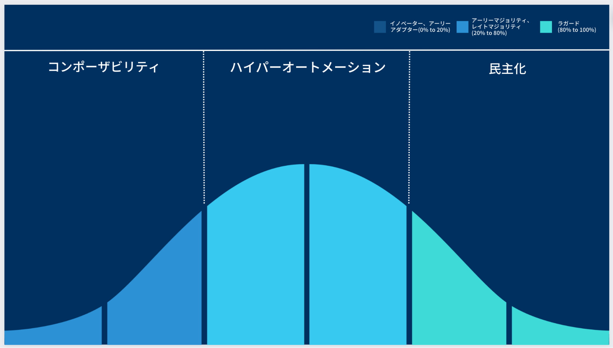 将来のアプリケーションは、部分的にPBC[Packaged Business Capabilities]から組み立てられるため、アプリケーションのエクスペリエンスとビジネスの成果は、組み立てと統合のための基盤となるプラットフォームの完全性と競争力に依存します。