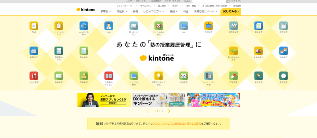 キントーンは、業務アプリがつくれるサイボウズのノーコード・ローコードツールです。