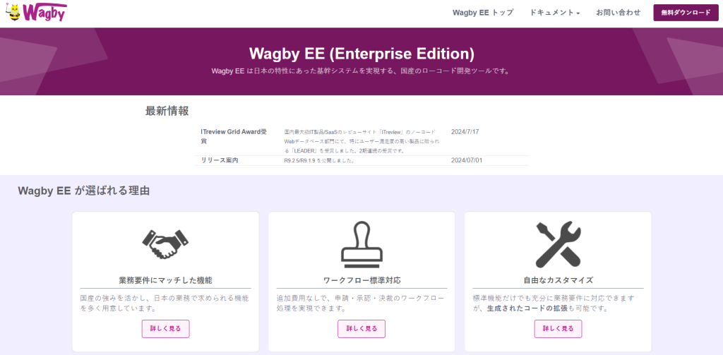 Wagby EEは日本の特性にあった基幹システムを実現する、国産のローコード開発プラットフォームです。