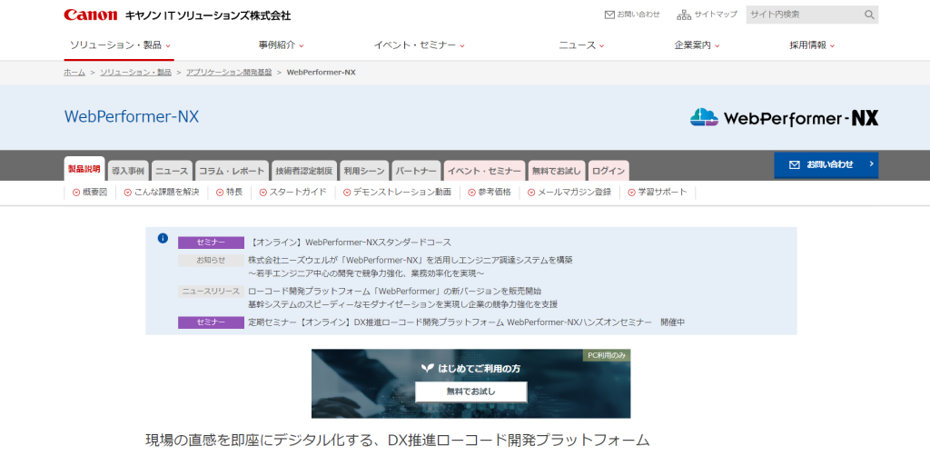 WebPerformer-NX|キヤノンITソリューションズ株式会社
