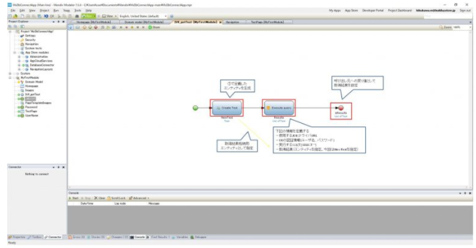 ①「Databadr connector」をダウンロードしたModelerで、DomainModelに、結果取得用のエンティティを作成します。