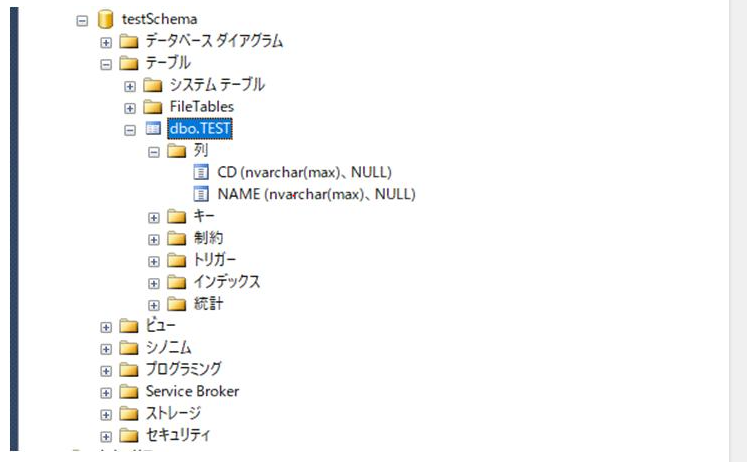 今回は、Mendixから外部DBのSQLServerに接続して、TESTテーブルからCDとNAME列のデータを取得します。