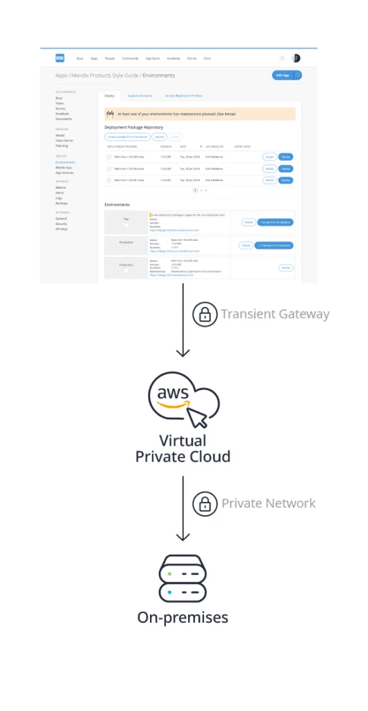 詳細については、Mendixクラウドは仮想プライベートクラウドをどのようにサポートしているかをご参照ください。