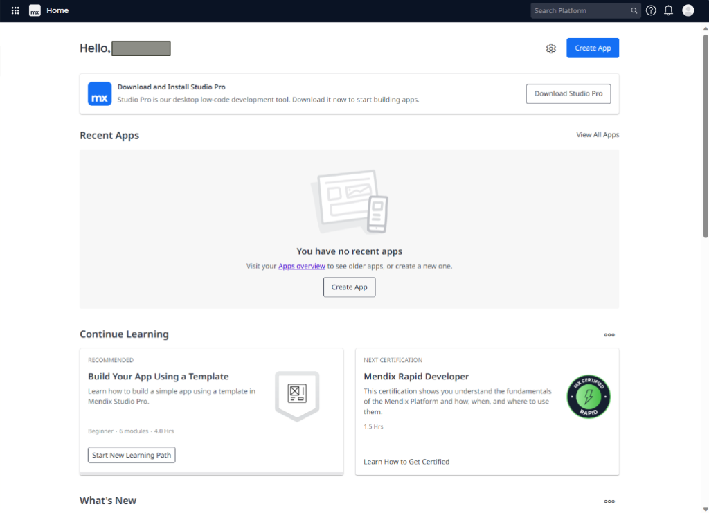 ※Mendix Marketplace – Home の上部にある「Get Studio Pro」からもダウンロード可能